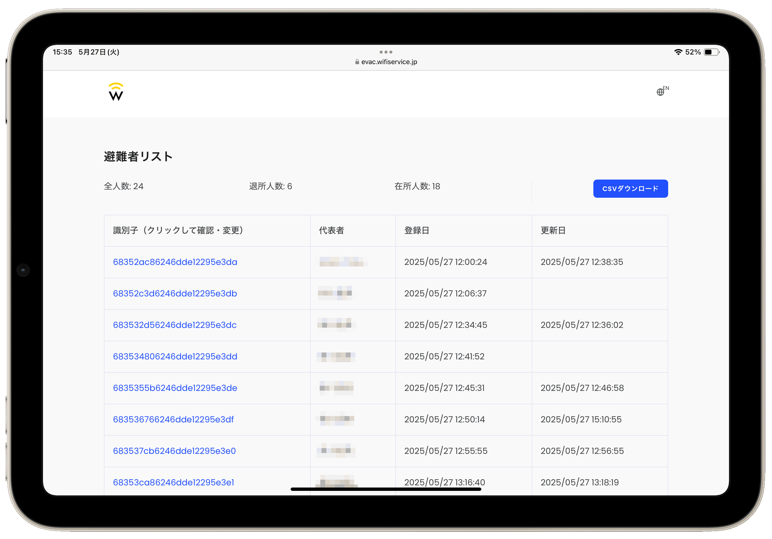 登録者のリストが表示されます。各IDをクリックすることで詳細を確認でき、更新もできます(退所日を代行入力する等)。